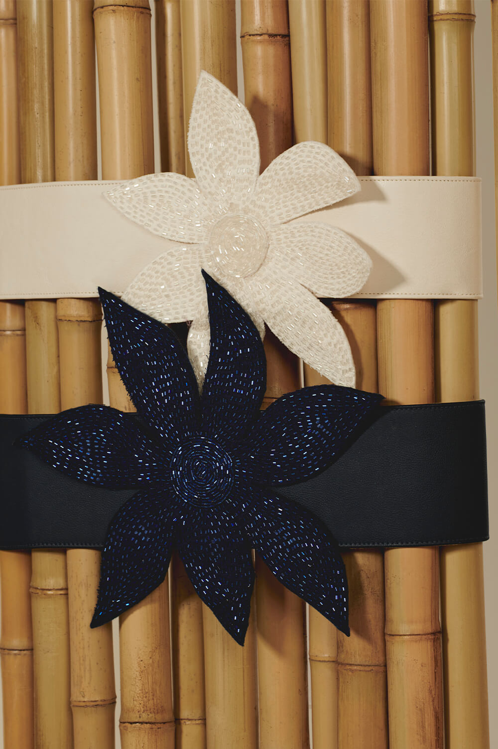 CINTO DE COURO CINTURA COM FLOR BORDADA LARANJA