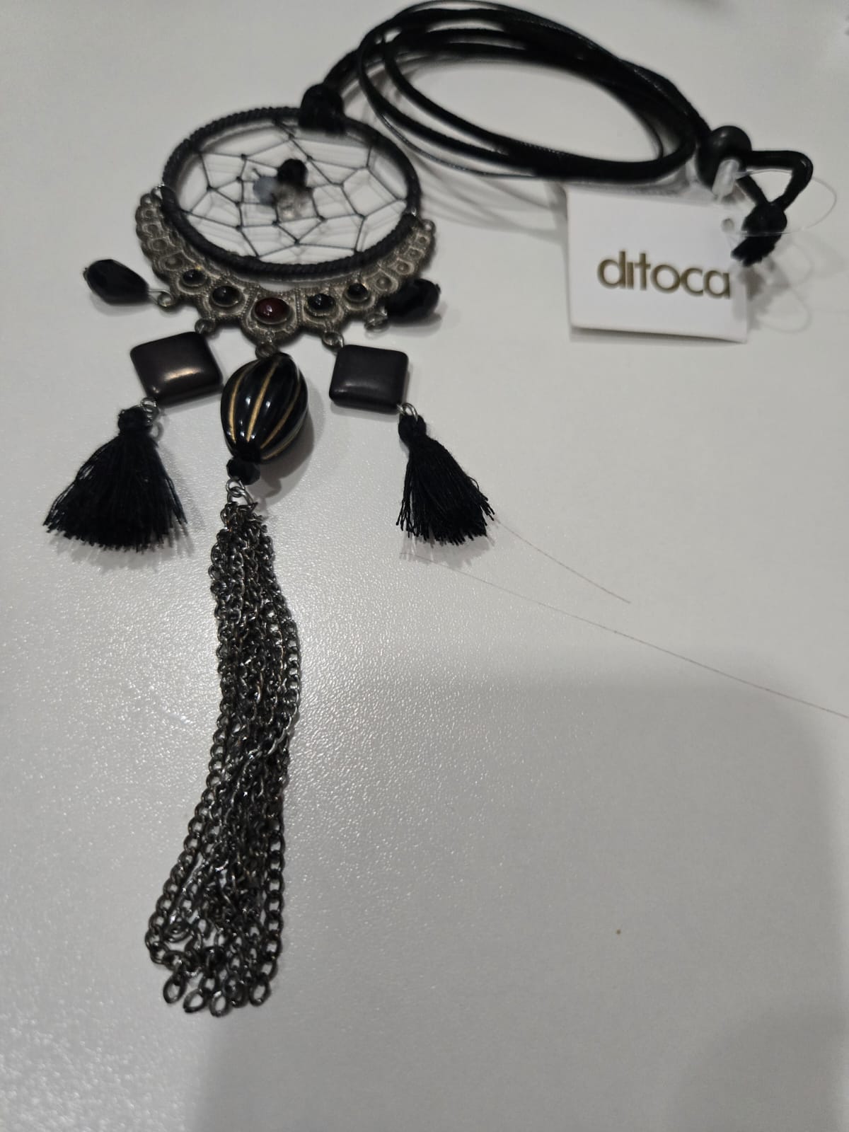 Colar longo com prata e couro