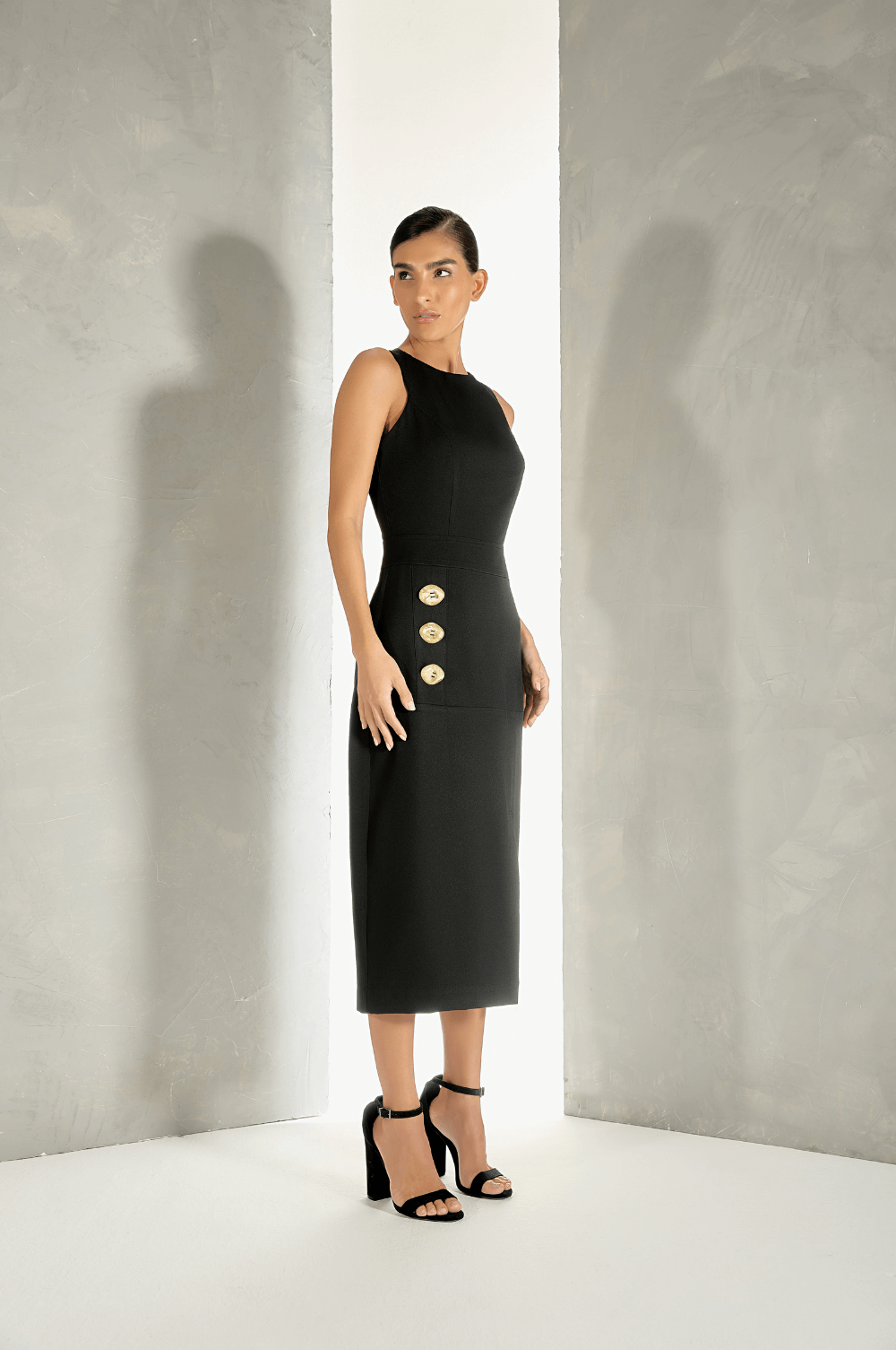 VESTIDO MIDI ALFAIATARIA DETALHE BOTAO